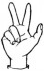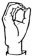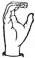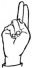 На ћирилици написано ДЕНИС РУЧНОВ састоји се из 11 слова [?]. Исписано ћириличном једноручном азбуком за глувонеме:
